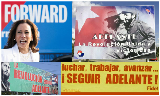 In her bid for President, Kamala Harris since June 2024 began utilizing and promoting known communist slogans of Fidel Castro. Harris repeatedly emphasized “Forward”. Fidel Castro used “Adelante”, the Spanish word meaning “Forward”.